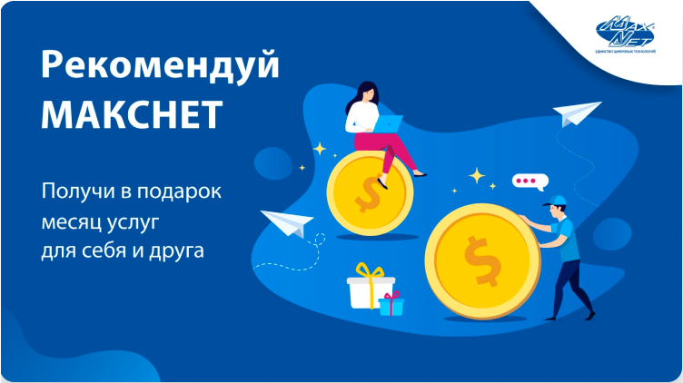 Программа лояльности «Рекомендуй Макснет» — удобный способ сэкономить на оплате услуг. Для участия в ней Вам нужно порекомендовать «Макснет» знакомым, которые собираются подключать интернет или ТВ.